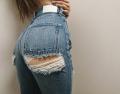 ミチミチビリビリゆっくりマンコめがけてイチモツをGパン破りながら挿入!