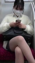 【電車対面】灰色系のパンストお姉さんパンチラ