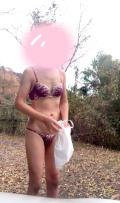 下着姿で野外露出