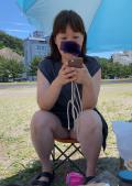 草いじりする妻尻